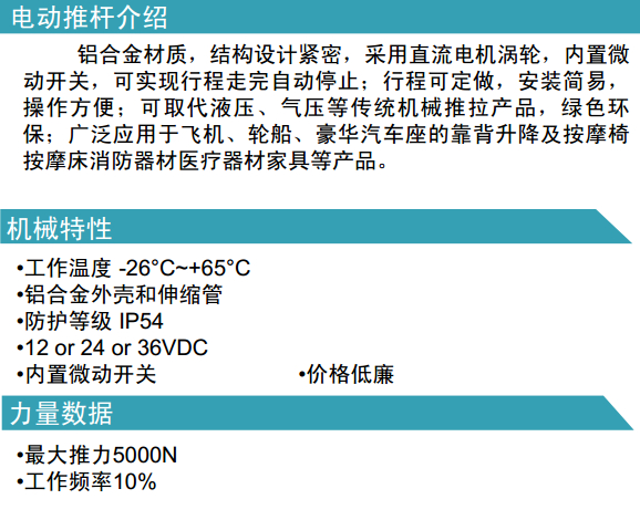 鋁合金材質(zhì),結(jié)構(gòu)設(shè)計緊密,采用直流電機(jī)渦輪,內(nèi)置微動開關(guān),可實現(xiàn)行程走完自動停止;行程可定做,安裝簡易,操作方便;可取代液壓、氣壓等傳統(tǒng)機(jī)械推拉產(chǎn)品,綠色環(huán)保;廣泛應(yīng)用于飛機(jī)、輪船、豪華汽車座的靠背升降及按摩椅按摩床消防器材醫(yī)療器材家具等產(chǎn)品。